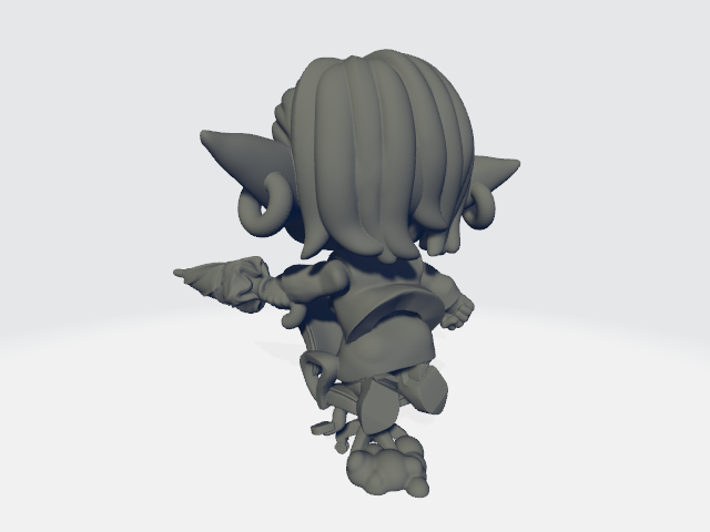 30mm scale 34mm height chibi miniature Goblin Office Worker on a rolly chair.