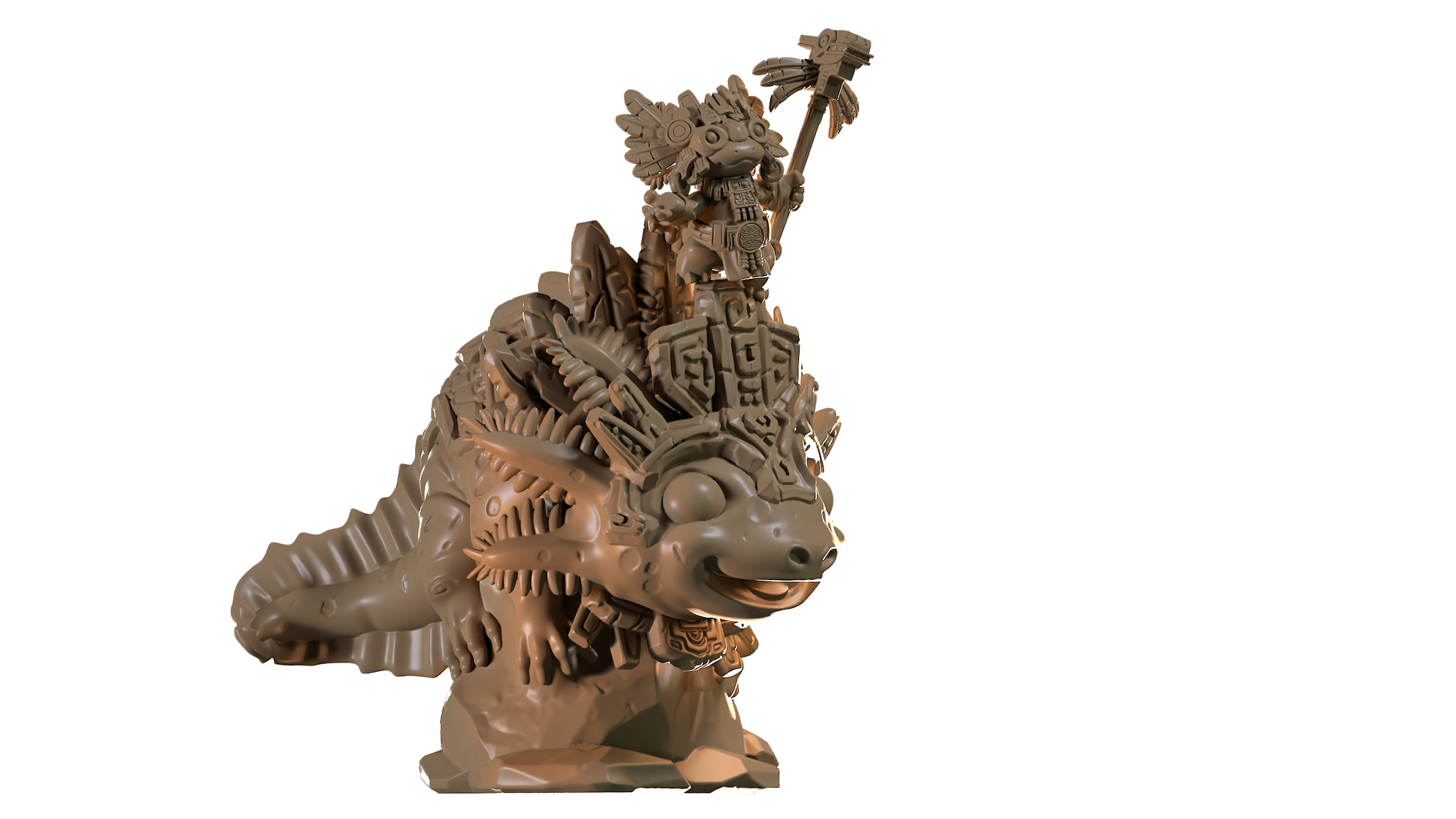 30mm scale 90mm height chibi miniature Great Axolothan / Axolotl Sorcerer on a Giant Axolotl. (hollowed)