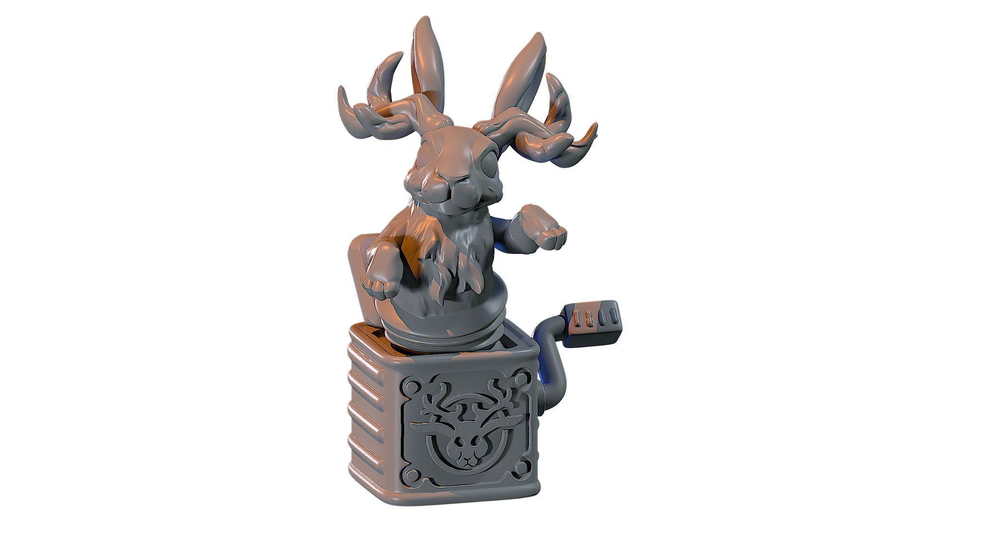 30mm scale 24mm height chibi miniature Jackalope in a Box.