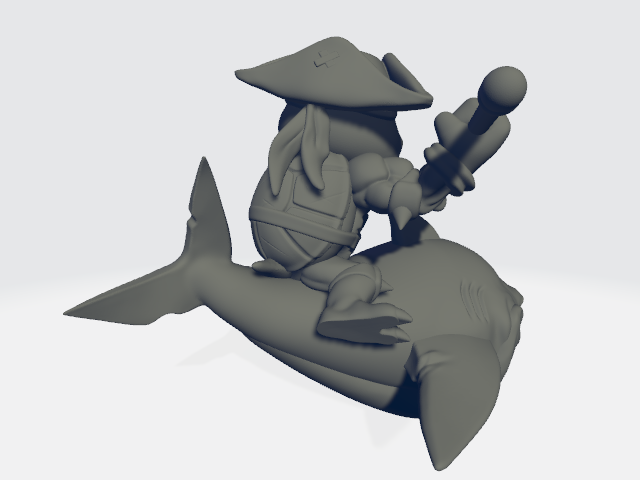 30mm scale 50mm height chibi miniature Turtle Pirate #20 riding a shark. (hollowed)