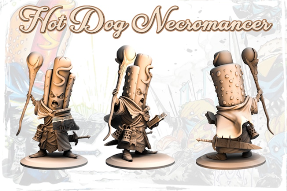 32mm scale 55mm height miniature Hot Dog Necromancer.
